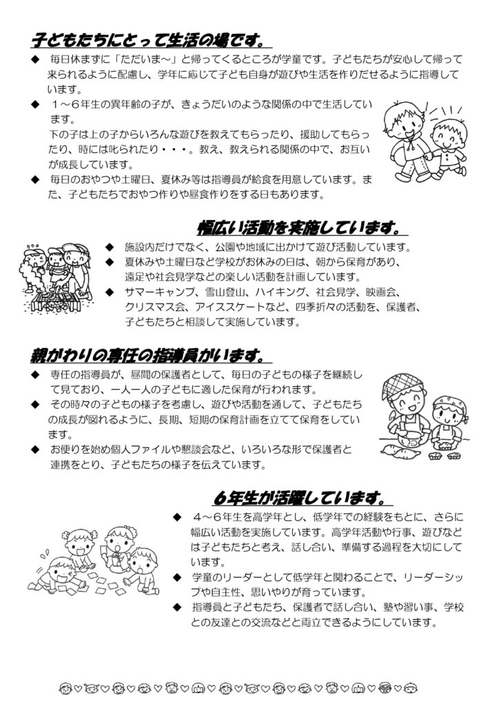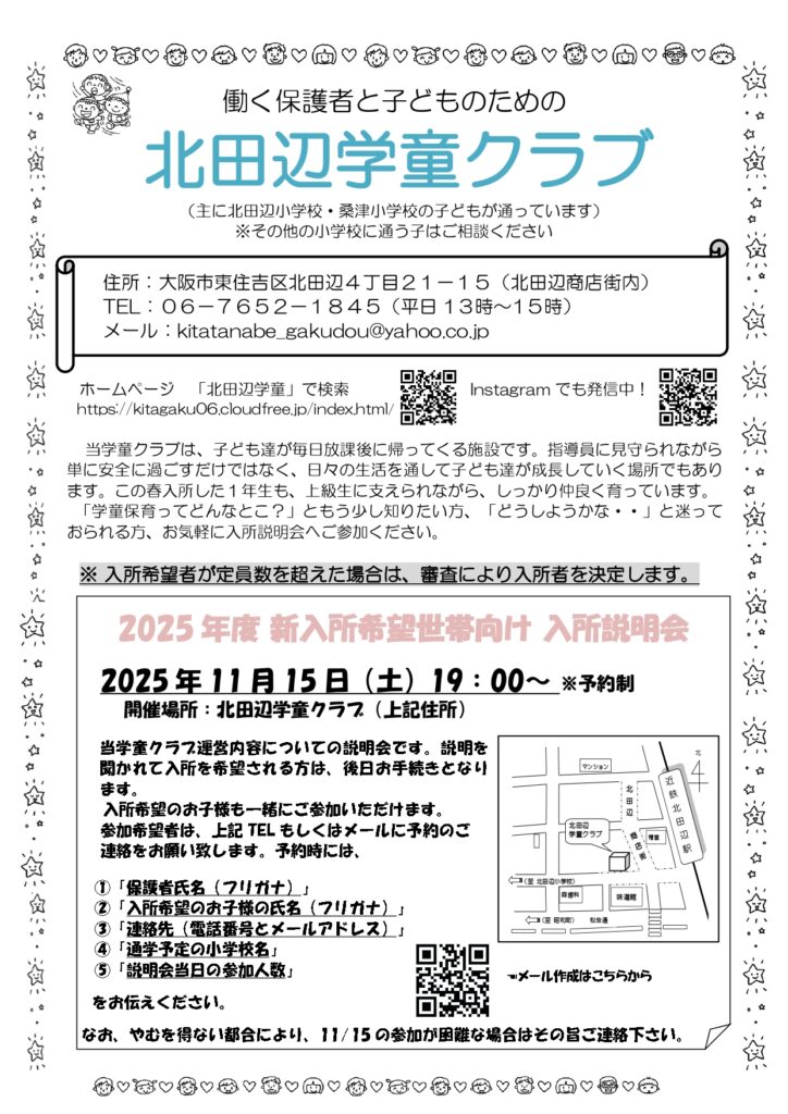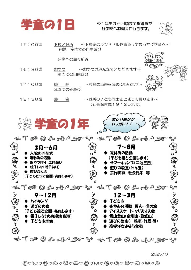2026年度 入所説明会について 2025.10.14 説明会へは下記よりお申込みいただけます。子供たちの様子や活動内容など、色々とご質問いただける場となっていますので、お気軽にご参加ください。 お問合せ